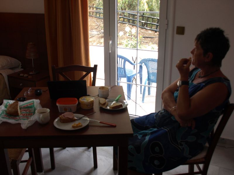 In der Zwischenzeit war es schon nach Mittag und wir wollten eine Kleinigkeit essen. Sind dann bei Gabi und Theo in Frangokastello eingekehrt.