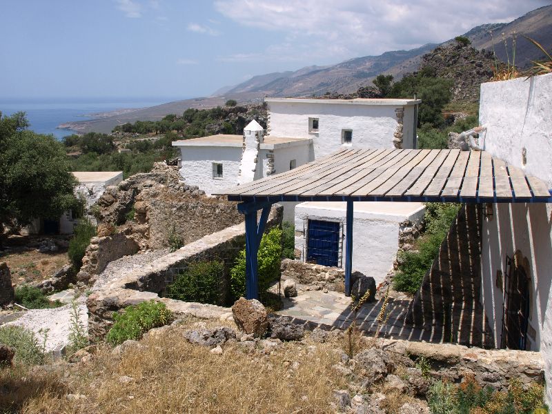 Unterwegs wurde das Wetter immer schöner und wir diskutierten ob wir in Frangokastello baden sollten. Dann ist mir der Ort Kolokasia eingefallen den wir schon immer mal besuchen wollten. Also in Agios Nektarios die Auffahrt zu dem Ort gesucht und hochgefahren. Über eine Stunde sind wir durch den ehemals verlassenen Ort gegangen und haben einige Aufnahmen gemacht. Es lohnt sich wirklich da mal hochzufahren. Einige Häuser sind jetzt wieder schön hergerichtet worden.