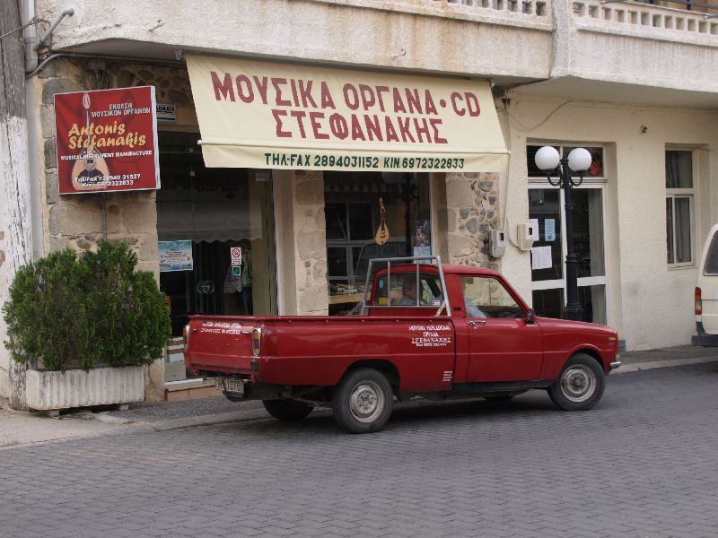 Am 24. 5. haben wir auf Einladung von Wolfgang und Gudrun Zaros besucht, ihr Feriendomizil auf Kreta. Für 10 Uhr hatte Wolfgang beim Musikinstrumentenbauer Antonios Stefanakis einen Besichtungstermin bei ihm ausgemacht und da wollten wir auch dabei sein. Also sind wir in Lefkogia schon um 8.30 Uhr weggefahren um rechtzeitig in Zaros zu sein. Wir haben uns dann vor dem Musikladen von Antonios getroffen der gerade auch schon um die Ecke kam. Er hat uns ausführlich die Herstellung von Musikinstrumenten und Flöten gezeigt. Auch sonst hatte er einiges zu erzählen. (Werde da mal noch ausführlich berichten). Mit zwei CDs von seiner Musik und einer Flasche von seinem eigenen Wein haben wir uns dann verabschiedet.