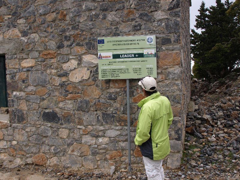 @ Insel: Die Zufahrt zur Schutzhütte endet etwas oberhalb derselben. Man muß wieder zurück zu dem Abzweig in dem Sattel fahren und dort rechts abbiegen, dann gelangt man abwärts zu der Kirche und dem Rastplatz Dhio Prinoi. Dort endet dann auch die Piste für Kfz.