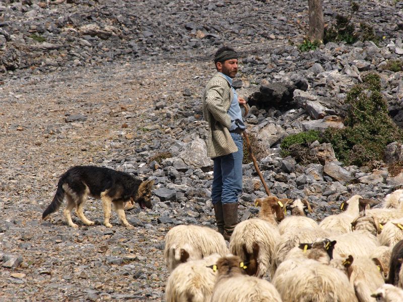 Auf der Hochebene befindet sich auch eine große Schaf- und Ziegenzucht. Der Hirte hat dort gerade die Herde mit seinen Hunden zum Melken getrieben.
