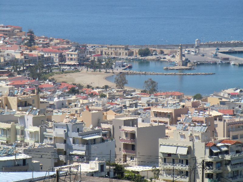 Am 15. 5., 11.45 Uhr sind wir pünktlich in Heraklion gelandet. Nach 20 Minuten hatten wir auch schon unsere Koffer und das Auto von Protos stand startbereit auf dem Mietwagenparkplatz. Zuerst ging es mal nach Rethymnon, genauer gesagt nach Rousospiti, das oberhalb der Stadt liegt. Hier haben wir bei Roswitha und Hans eine kleine Kaffeepause eingelegt. Sie hatten Inge im September im Krankenhaus besucht. Gestärkt mit einer leckeren Erdbeer-Biskuit-Rolle, wir revanchierten uns mit einer Packung ,,Aalener Spionle'', ging die Fahrt dann weiter nach Nopigia bei Kastelli/Kissamos.