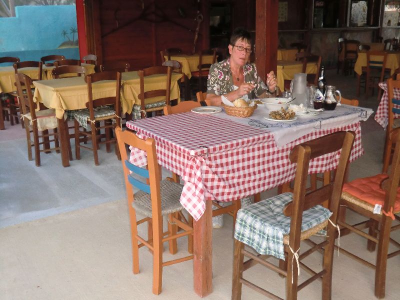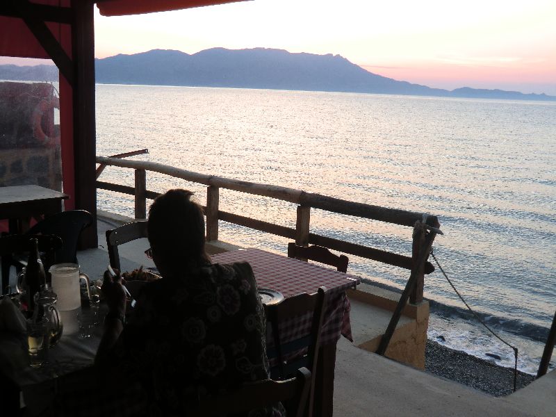 Den Abend verbrachten wir dann noch beim Essen in einer der beiden Tavernen von Nopigia. Wir waren die einzigen Gäste an diesem Sonntagabend. Das Essen war gut aber sie hatten nur wenig zur Auswahl. Wir genossen noch den ersten Sonnenuntergang bei einem Gläschen Wein und machten uns dann müde heim ins Apartment.