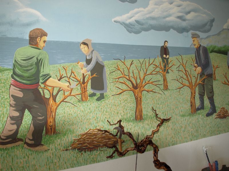 An diesem Mittwoch wollten wir nicht viel unternehmen außer an den Strand nach Falassarna zu gehen. Das Wetter sah aber noch nicht so beständig aus, so beschlossen wir noch Polyrinia einen Besuch abzustatten. Zeit hatten wir ja so fuhren wir in Nopigia über die Kreuzung zur Old Road und nahmen nicht die Schnellstraße. Gleich im nächsten Ort Drapanias sahen wir auf der linken Seite eine große Tafel mit der Aufschrift Weingut und Weinmuseum. Also kurz angehalten mal schauen was es da zu sehen gibt.