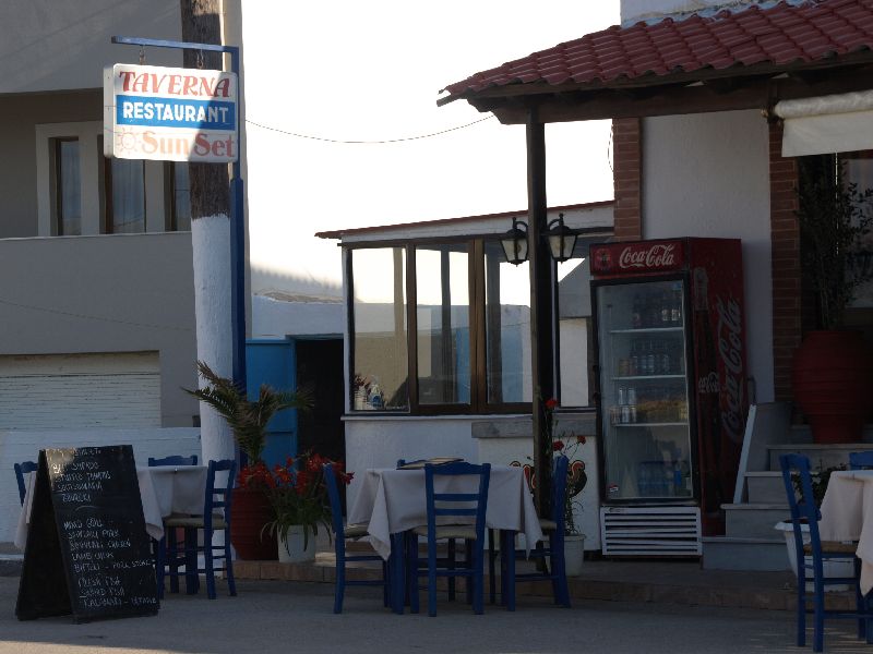 Der Wein hat dann schon seine Wirkung gezeigt und wir beschlossen nach Kissamos zu fahren um etwas zu essen. In Kissamos war tote Hose. Im Sunset bei Schula und Jorgos haben wir dann lecker gespeist.