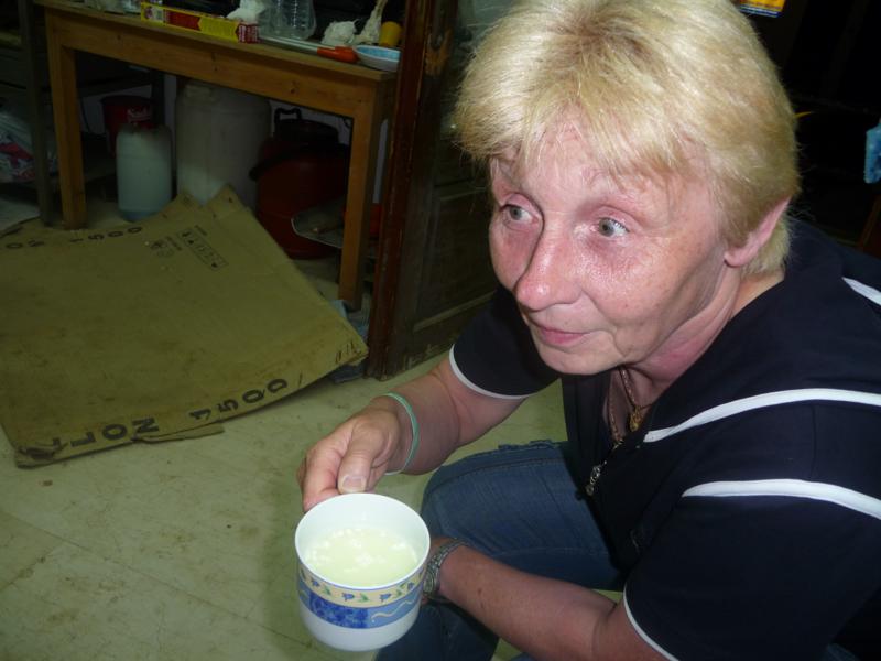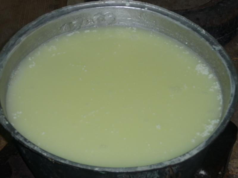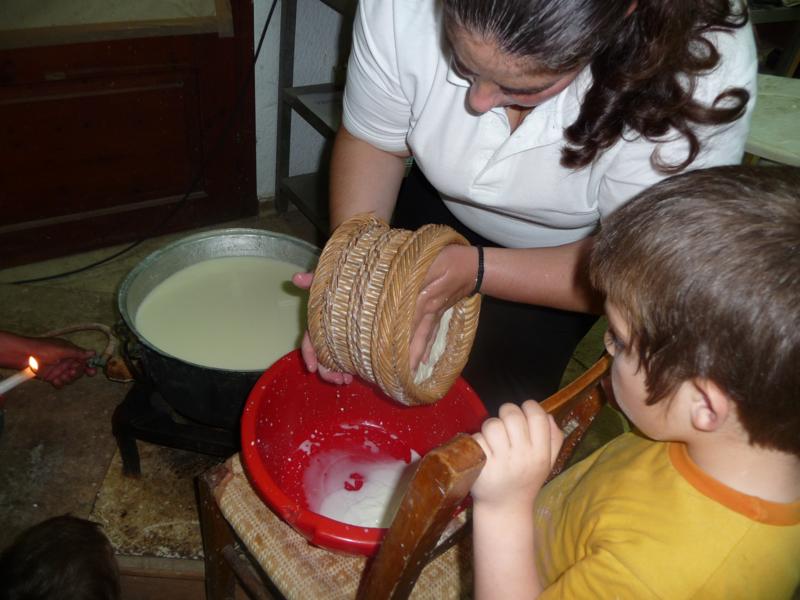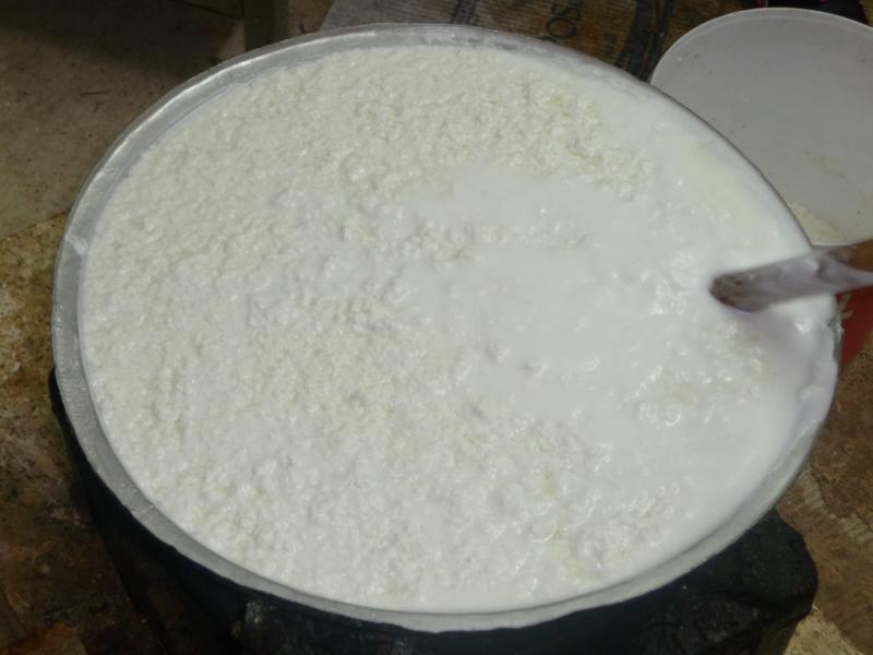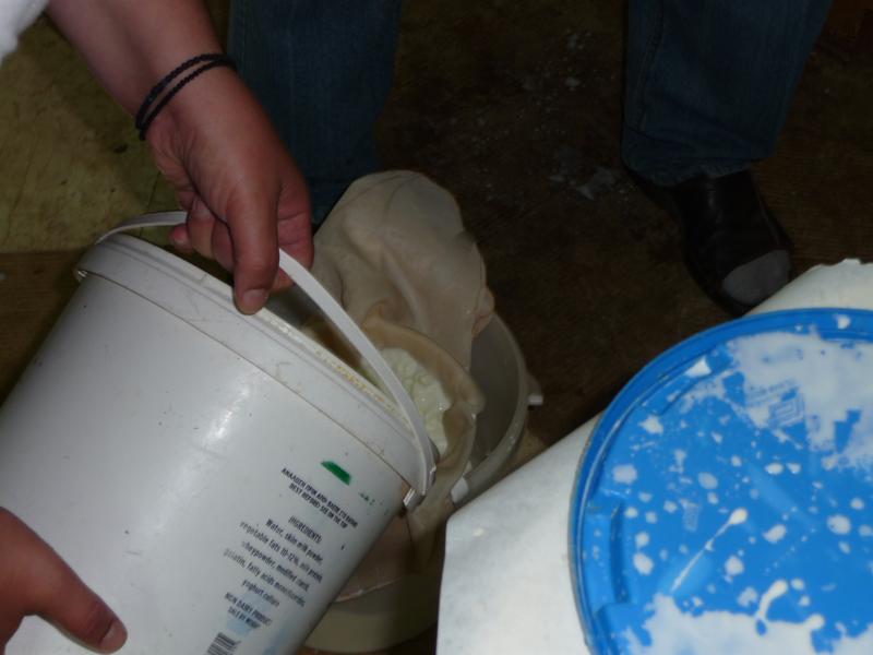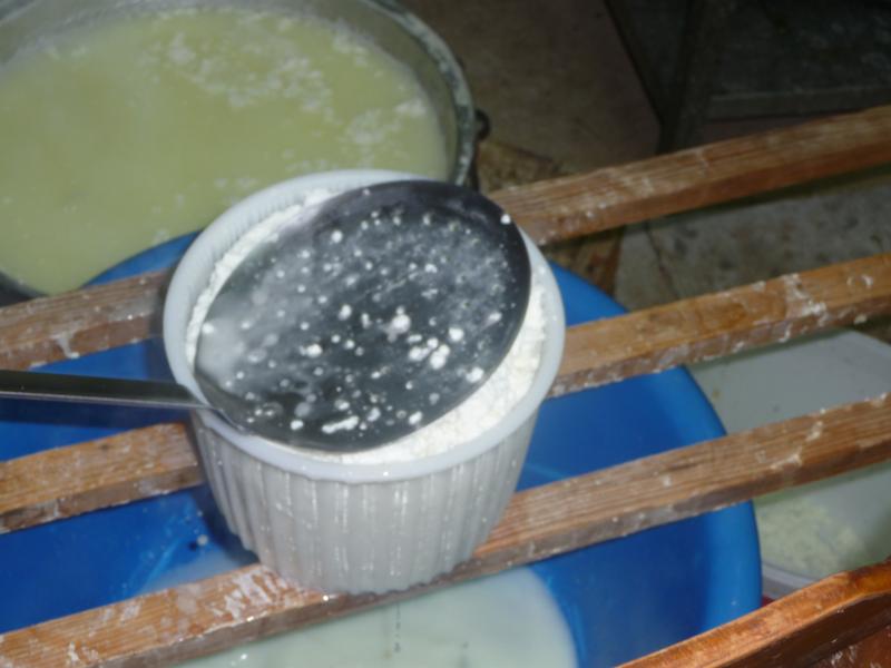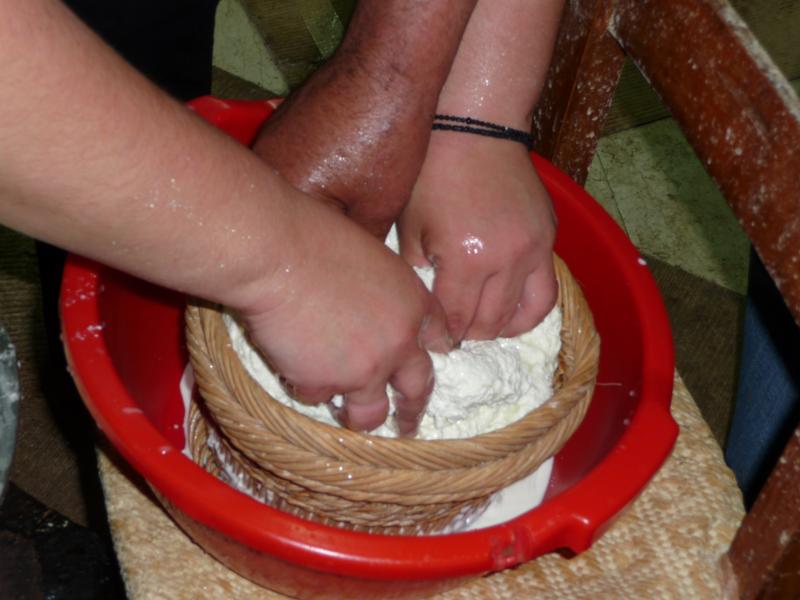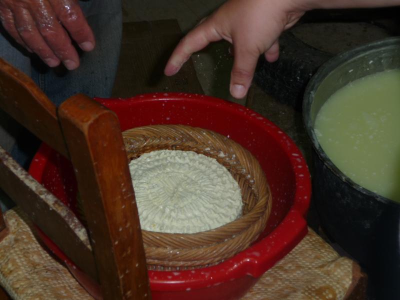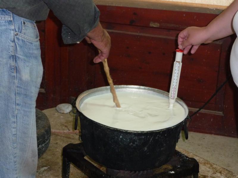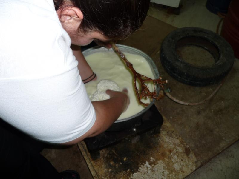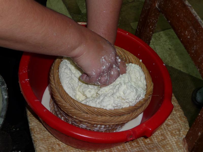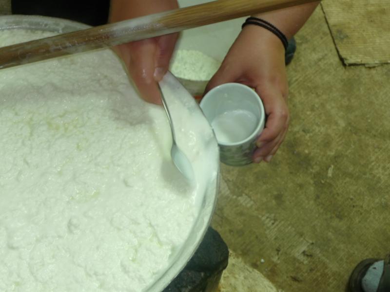 beim Käse machen zu zuschauen.Aus 20 Litern Schafsmilch wurde