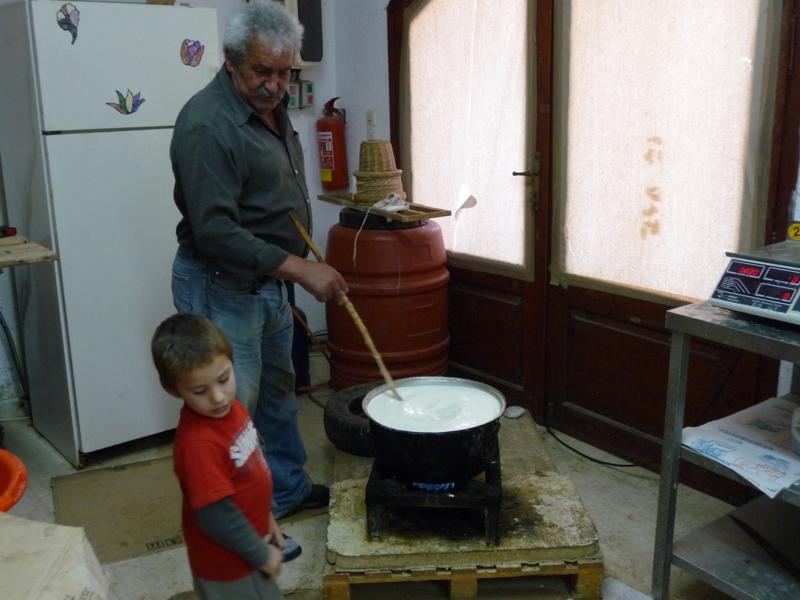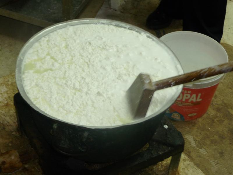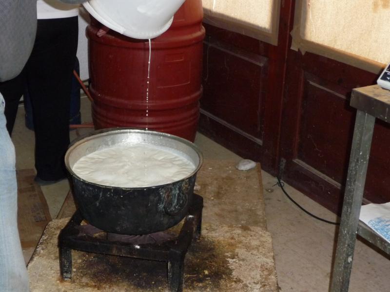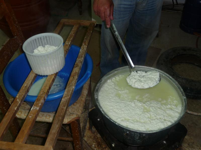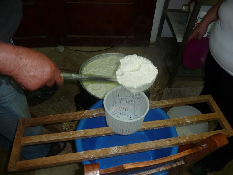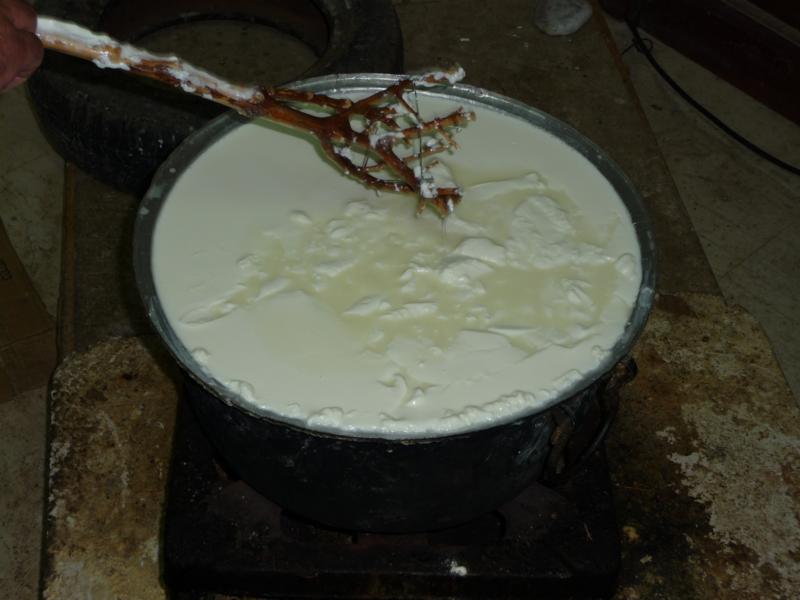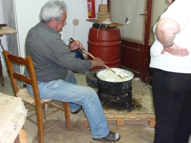 erhitzt,und aus dieser Masse wurde dann Misithra gewonnen.Den konnten wir schon probieren,und ich muss sagen,der schmeckte klasse.Der roch überhaupt nicht nach Schaf,