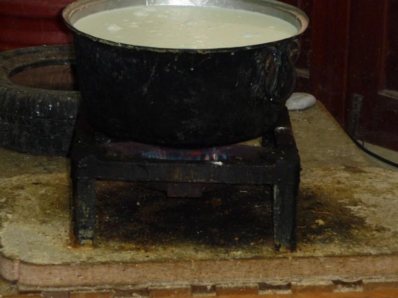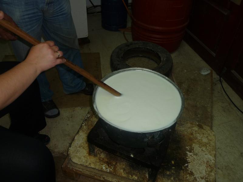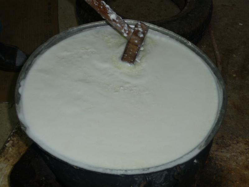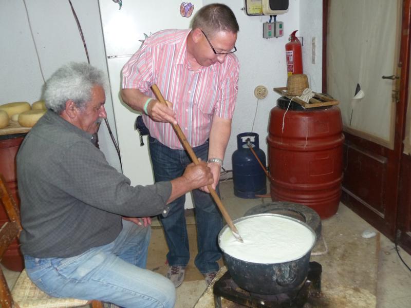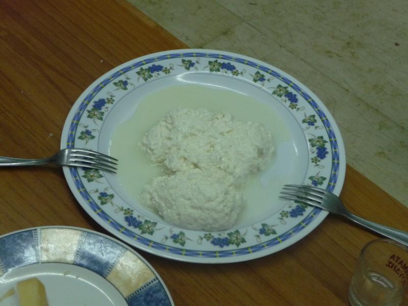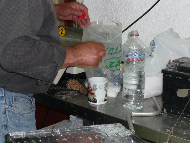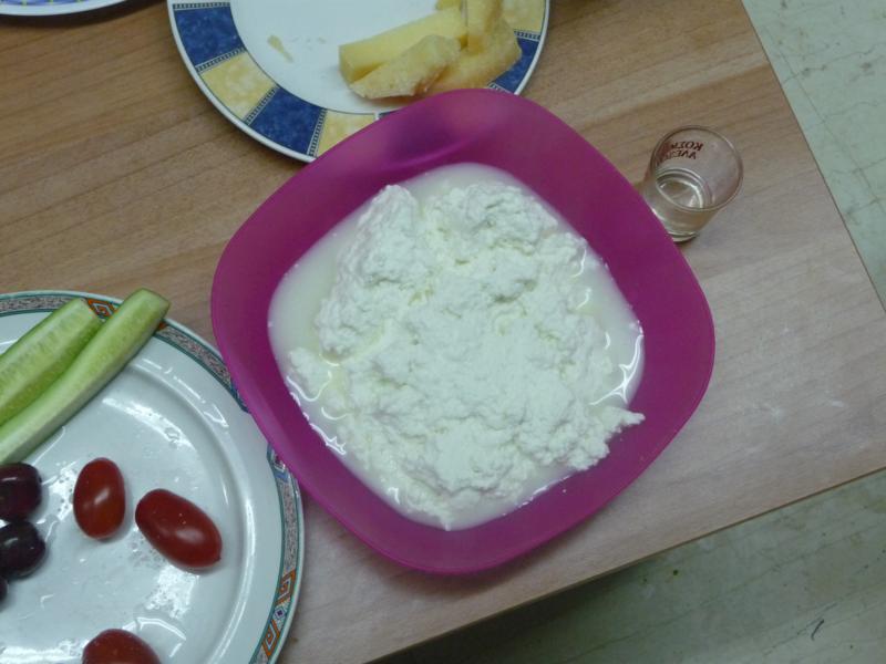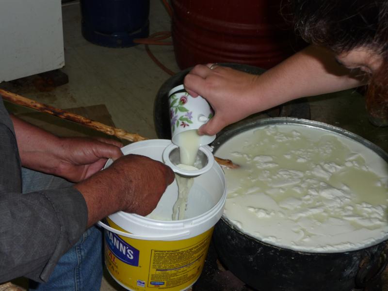 erhitzt,und aus dieser Masse wurde dann Misithra gewonnen.Den konnten wir schon probieren,und ich muss sagen,der schmeckte klasse.Der roch überhaupt nicht nach Schaf,