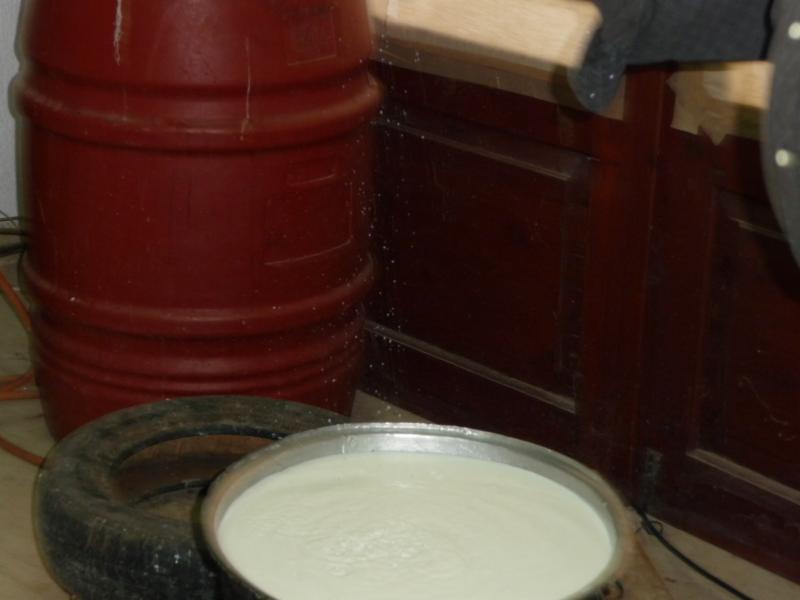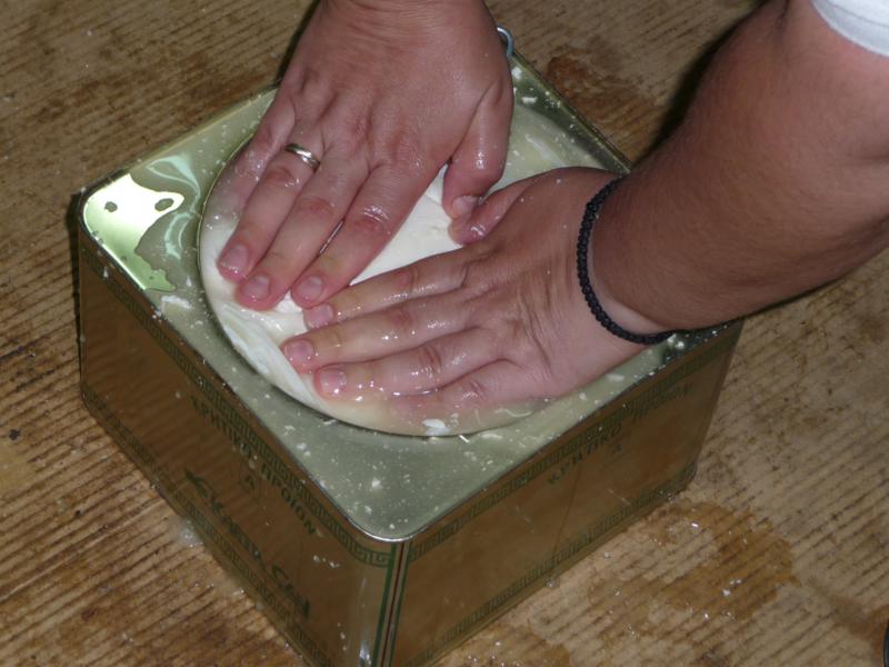 Das wurde dann Kefalotiri,der 3 Monate reifen muss.Der Rest im Kessel wurde wieder