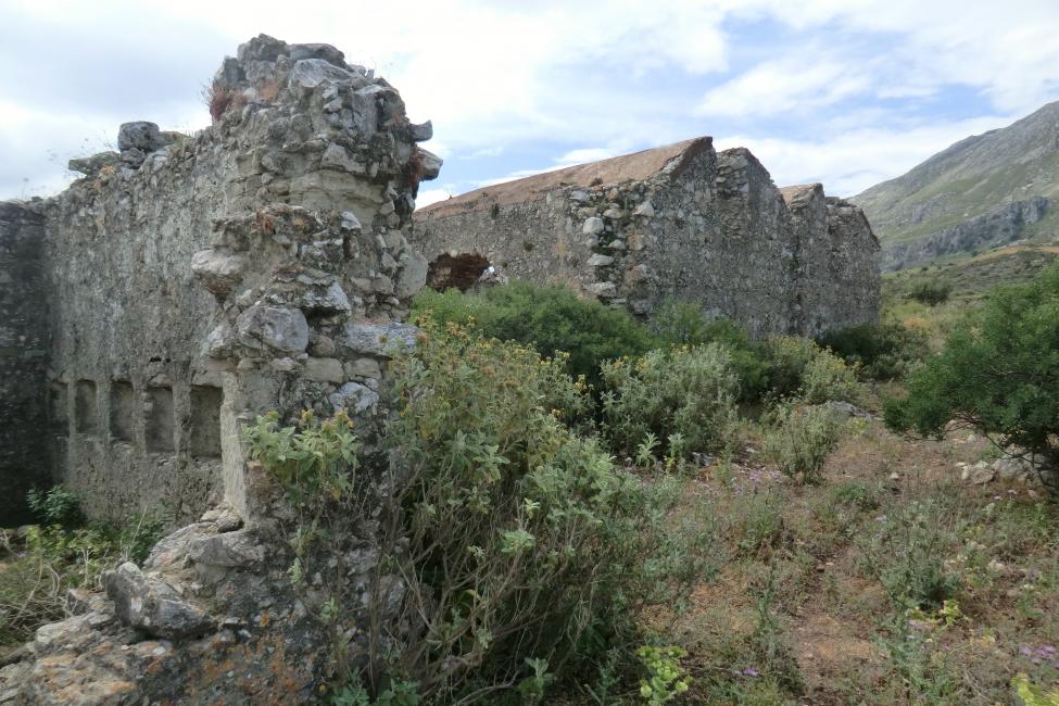 Südlich von Koxare befindet sich die Ruine des 1866 durch das osmanische Militär errichteten, mit 44 x 30 Meter Fläche relativ großen Kastells Koules ♁⊙ auf einer Erhebung, von der aus die umliegende Umgebung und der Weg durch die Schlucht zur Südküste kontrolliert werden konnten. Das ansonsten typisch türkische Kastell weist als bauliche Besonderheit an den Längsseiten mit Gewölben überbaute Räume auf, die architektonisch an die venezianischen Arsenale im Hafen von Chania erinnern. In den fast quadratische Innenhof gelangt man durch zwei sich gegenüberliegende Torhäuser. An der Südmauer war das Gebäude auf ganzer Länge von einem doppelten Tonnengewölbe überdacht. Längs der Nordmauer war ein einfaches Gewölbe ausgeführt. Beide Gewölbe sind bis auf die mauernahen Randbereiche verfallen. Ringsum sind alle Mauern in dichter Folge mit Schießscharten versehen. Vor dem früher befahrbaren östlichen Haupteingang des Kastells befindet sich die Ruine einer byzantinischen Kapelle, welche erst zusammen mit dem Kastell aufgegeben wurde, obwohl sie ihm militärisch „im Wege stand“. Dieses Faktum ist bemerkenswert, weil es zumindest für diese Region auf eine Phase friedlicher Koexistenz zwischen osmanischer Besatzung und der orthodoxen Kirche und Bevölkerung schließen lässt.