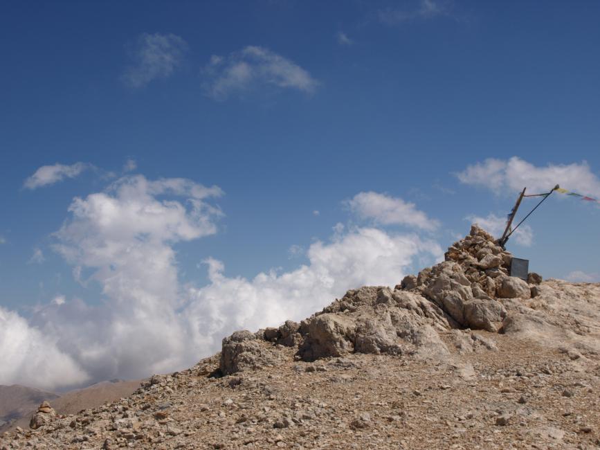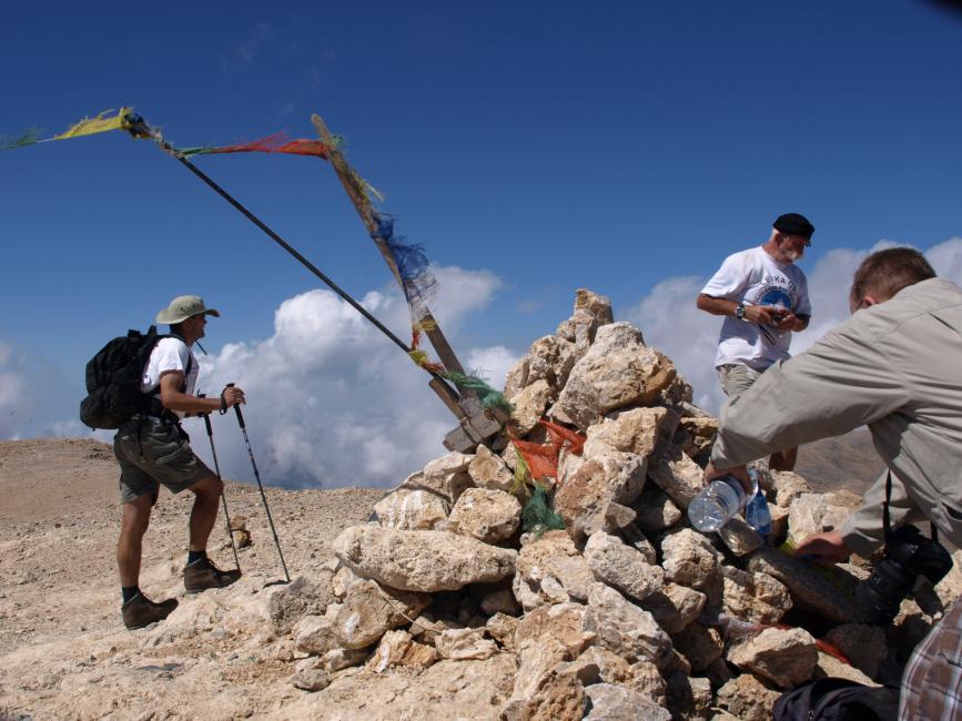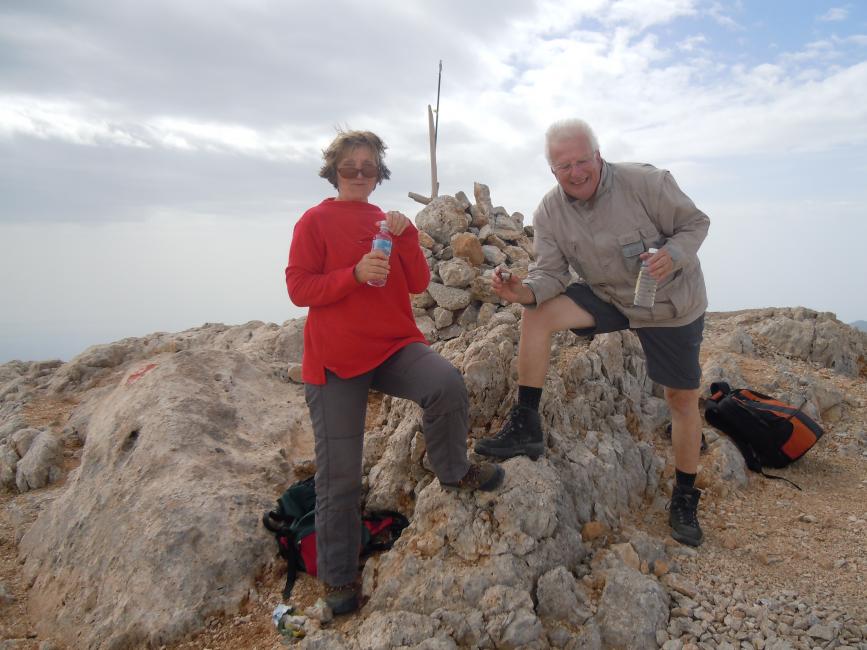 Wir haben auf dem Pachnes eine englische Wandergruppe mit einem kretischen Führer getroffen. Wir kamen fast gleichzeitig auf dem Gipfel an. Sie sind weiter zur Kallergi-Hütte.