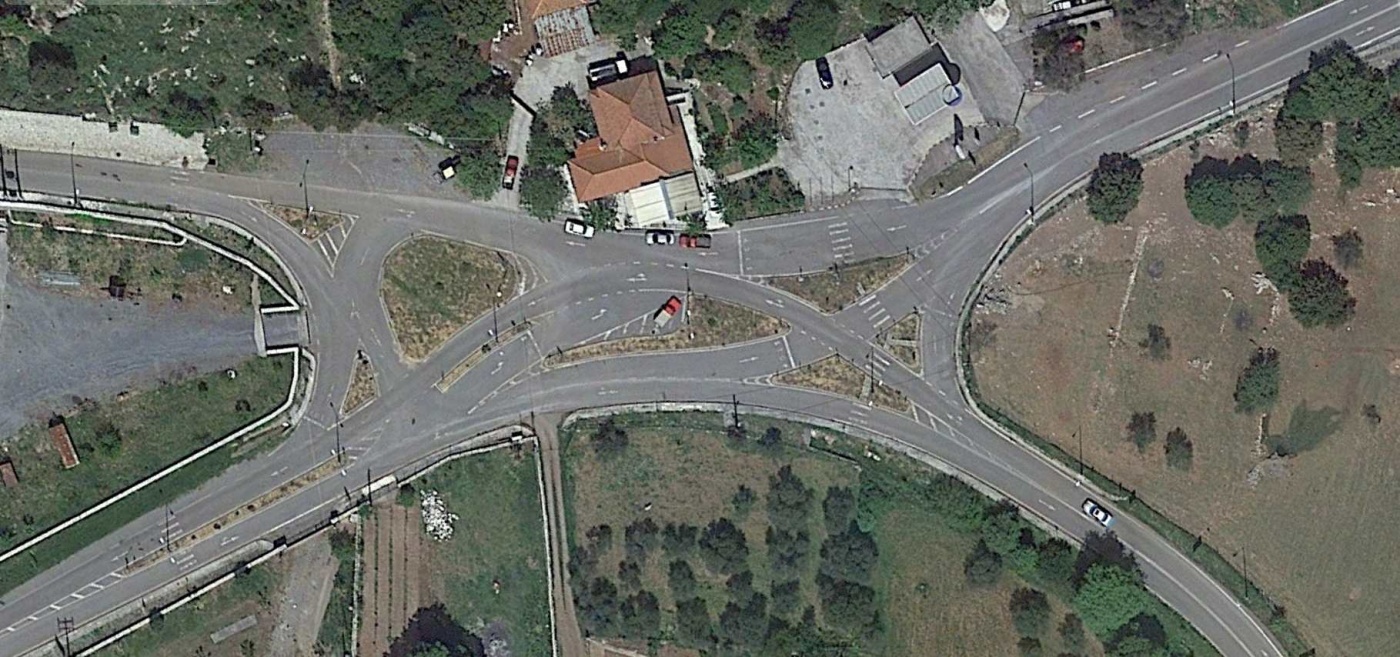 Auf dem Peleponnes habe ich 2017 ein Meisterwerk der Straßenkreuzungskunst gesehen, allerdings ohne EU-Schild. In Karitena gab es mal eine Kreuzung. Eine Hauptstrasse mit zwei Abzweigungen. So ähnlich, als wenn bei uns in der Provinz von einer Kreisstrasse zwei andere Kreisstrassen abzweigen. Wenig Verkehr, da tut's 2x Vorfahrt gewähren und 2x Vorfahrtstrasse. Aber in Karitena sollte es mal was ordentliches sein !!!