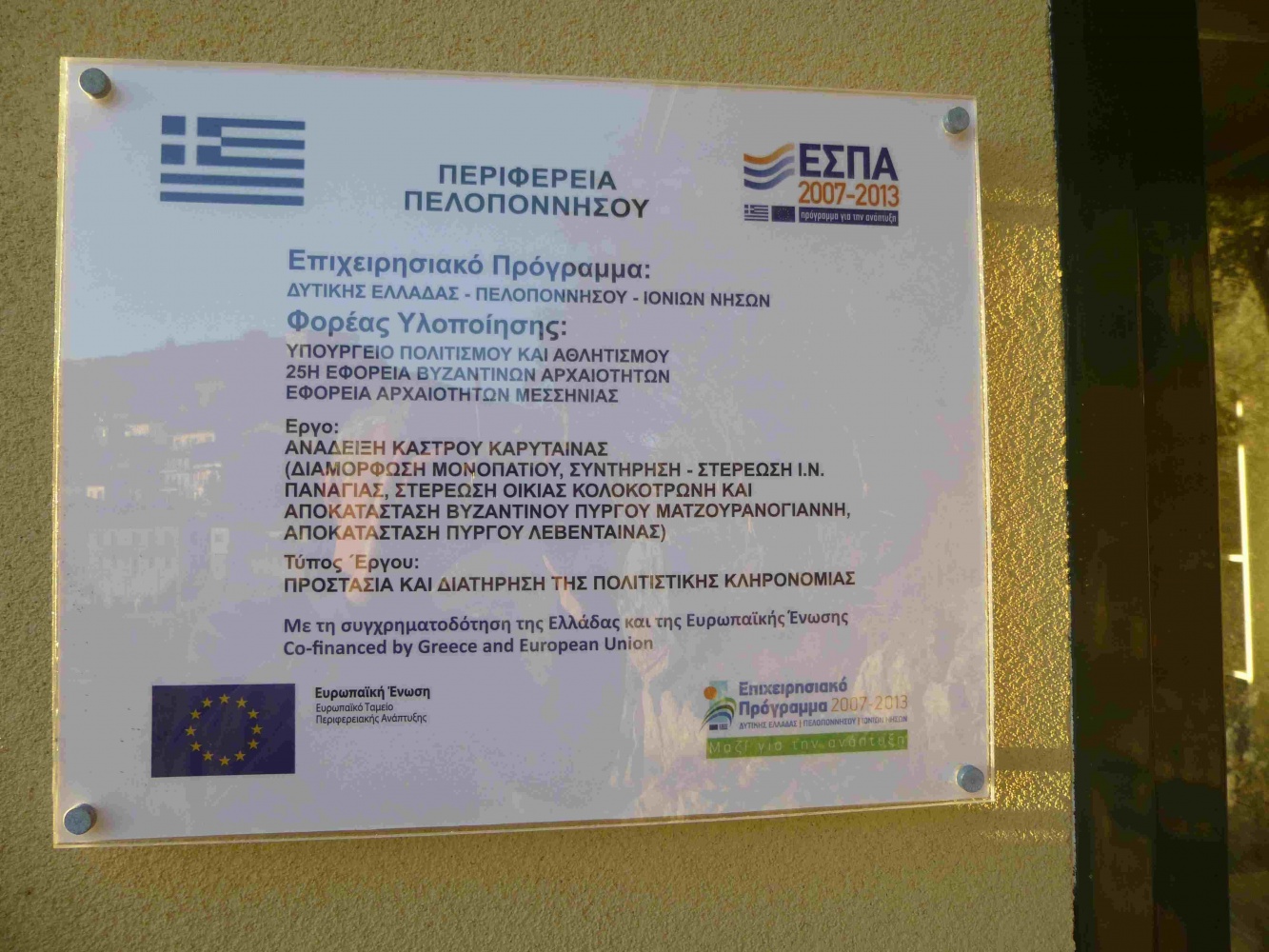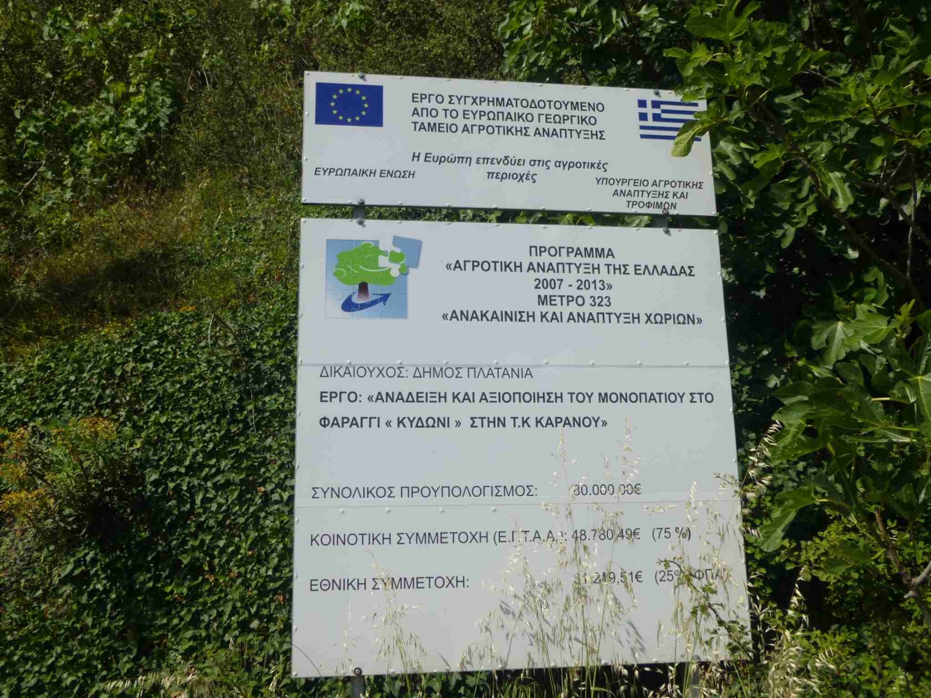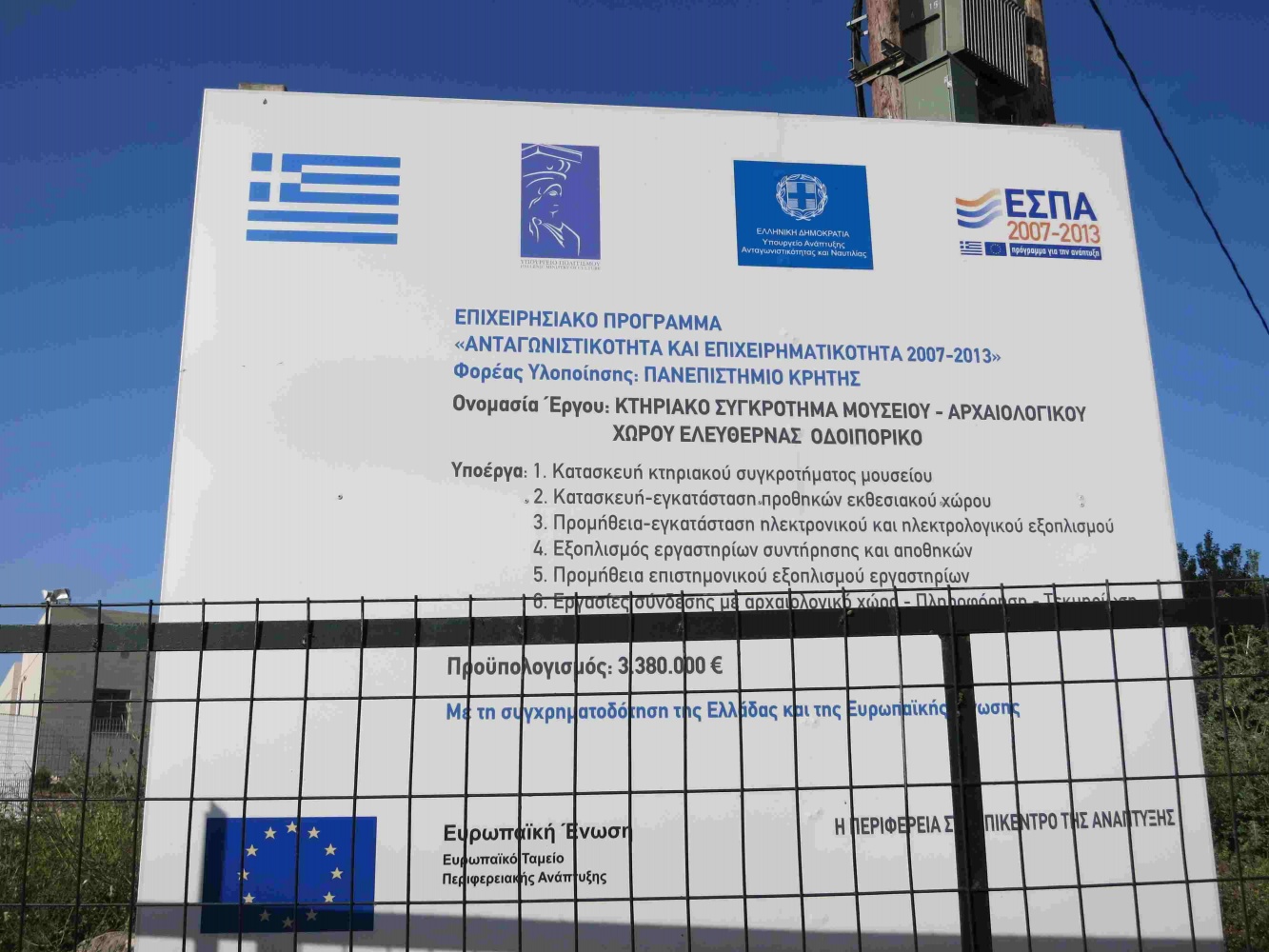 Auf Kreta, und auch im restlichen Griechenland, fallen mir immer wieder die großen EU-Schilder auf. Hier steht, leider nur in griechisch, (wohl) drauf, was gemacht wurde, und wie teuer es war.