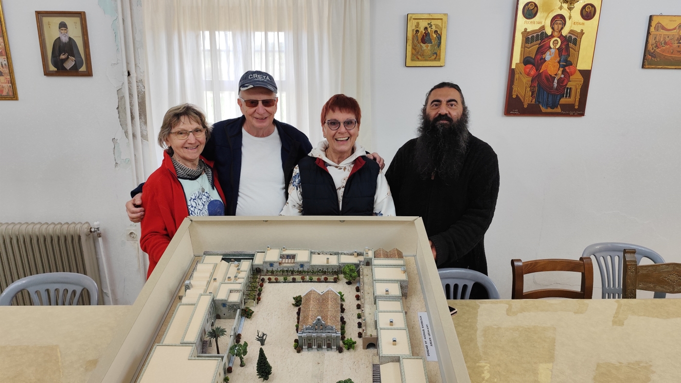 Anfang Mai hatten Mino und seine Frau Sybille das von ihm entworfene und gebaute Modell des Klosters Arkadi der KlosterLeitung übergeben.