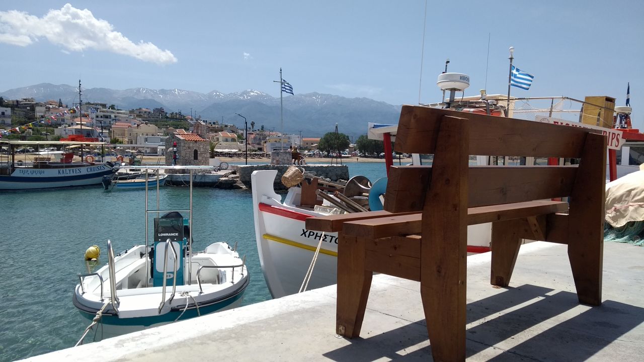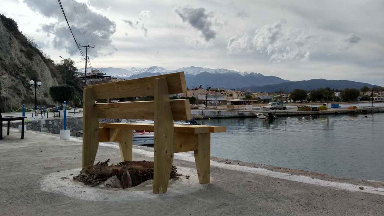 Am Hafen von Kalives sind neue Bänke aufgestellt worden.