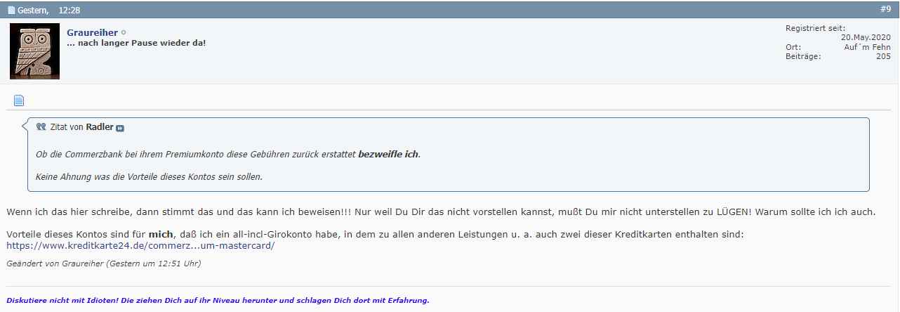 Denn wenn du nur die Werbeversprechen der Bank wiederholst, dann lügt ja maximal die Bank,