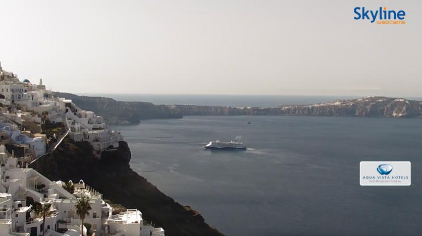 Da aus Sicherheitsgründen der Alte Hafen samt Seilbahn und und Eselstreppe die nächsten zwei Monate noch gesperrt ist, müssen Kreuzfahrtschiffe am Fährhafen Athinios anlegen, bzw. wird dorthin ausgebootet. Bei großen Kreuzfahrtschiffen mit den dortigen Vorsichtmaßnahmen schlecht zu vereinbaren. Die Celestyal Discovery mit 1266 Gästen gehört wohl noch zu den kleineren. Andere Kreuzfahrtlinien haben ihre Santorin-Besuche vorerst gestrichen.