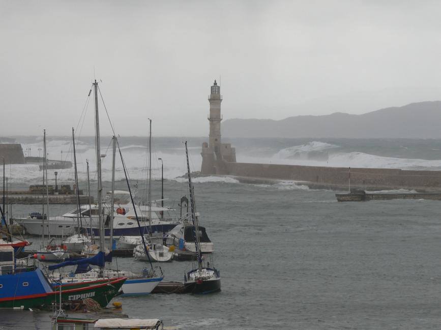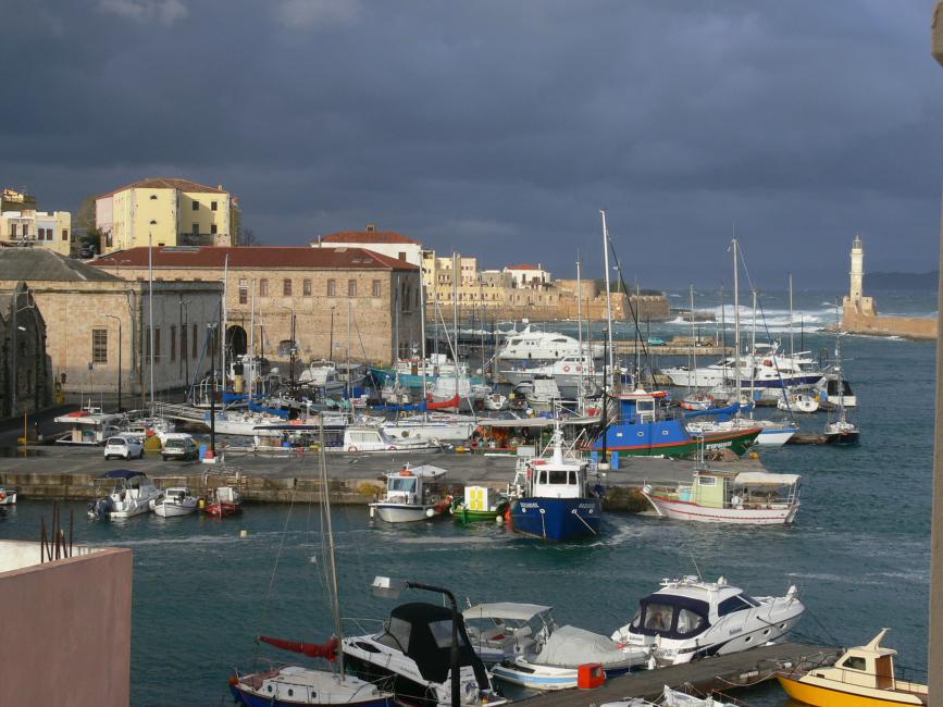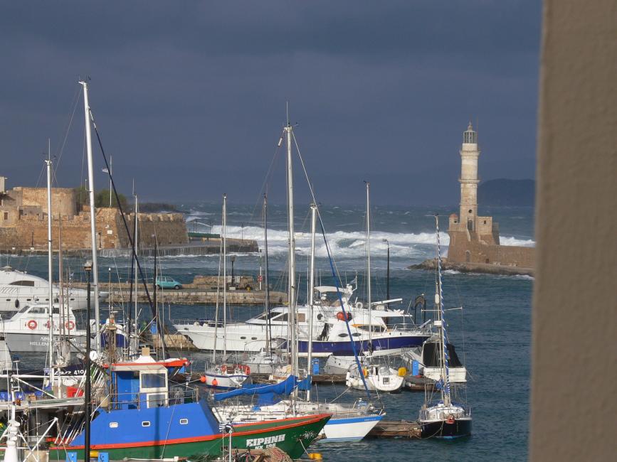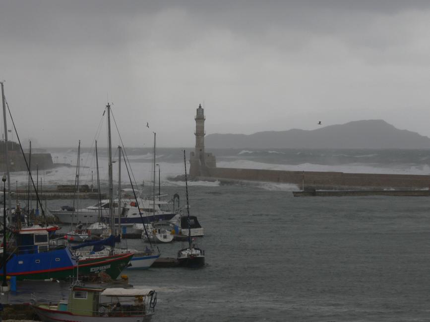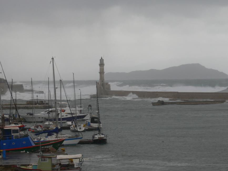Unser für den Vormittag gebuchte Flug nach Athen war gestrichen worden (nachdem wir 2 Std am Flughafen gewartet haben und der Pilot den Landeanflug abgebrochen hat) und so sind wir in den Genuß gekommen eine weitere Nacht auf Kreta zu bleiben und Chania mal bei wirklich nicht sommerlichem Wetter zu erleben!