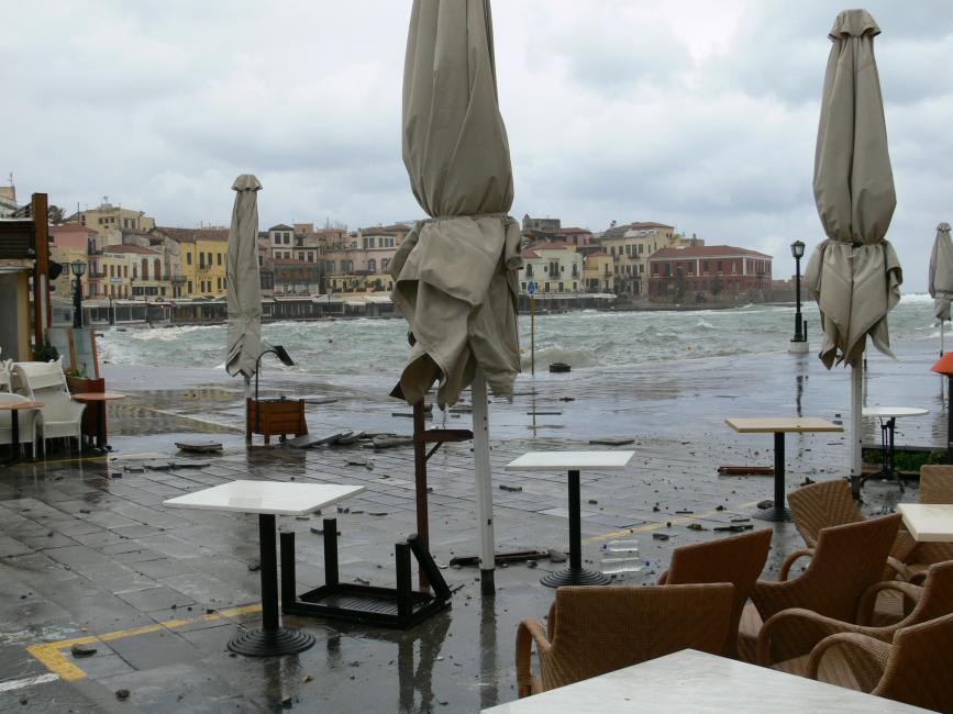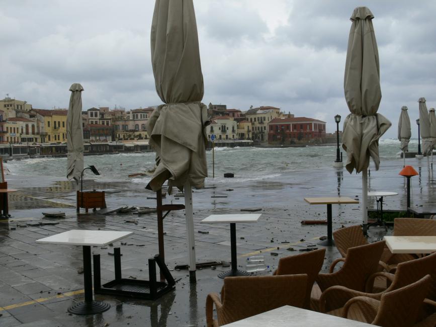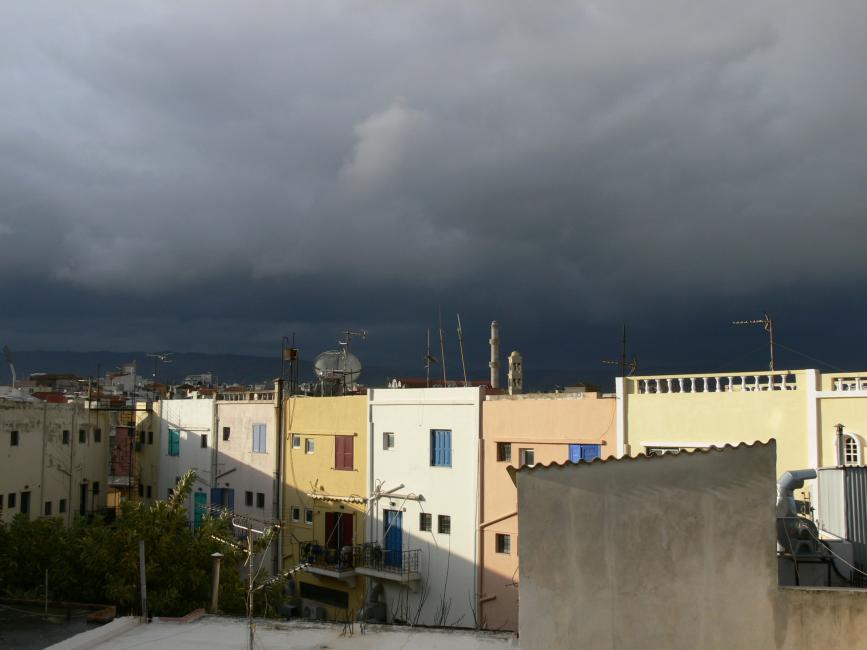Freitags abends haben unsere griechischen Freunde in Chora Sfakion schon angefangen vom Wetterumschwung und wirklich schlechtem Wetter zu reden. Wir wollten das natürlich überhaupt nicht wahrhaben, da wir an diesem Freitag (mein Geburtstag :biggrin:) mit hochgekrempelter Jeans und Shirt auf der Terasse gesessen hatten... (innerlich stinksauer, weil wir keine kurzen Hosen mit hatten)