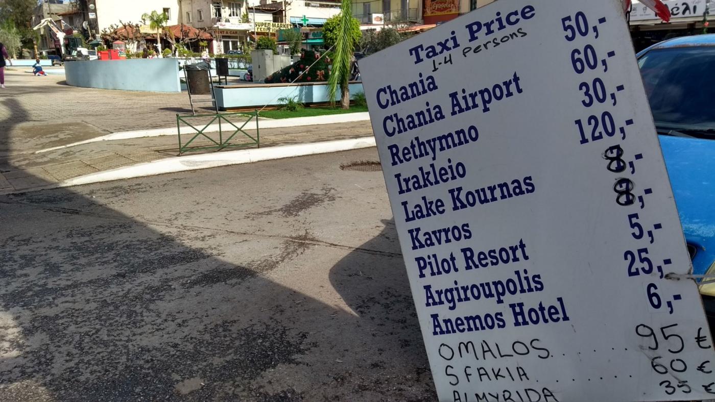 Zuerst ist mir in Geo das Schild mit den Taxipreisen aufgefallen.