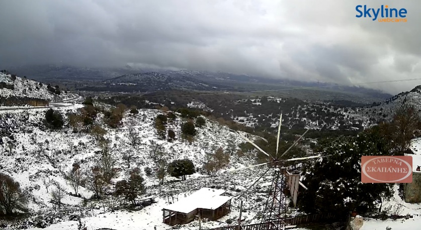 die Schulen und ... sind in Anogia wegen Schnee morgen geschlossen
