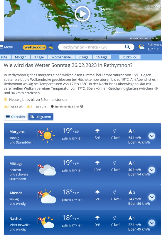 Das wurde leider nicht nur von wetter.com vorhergesagt, sondern auch von meteo.gr und windy.com.