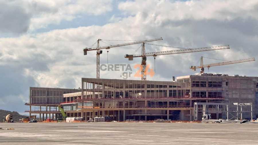 "Das Gebäude des neuen Flughafens in Kastelli schreitet voran. Dem Bericht zufolge ist es zu 22 % fertig..."