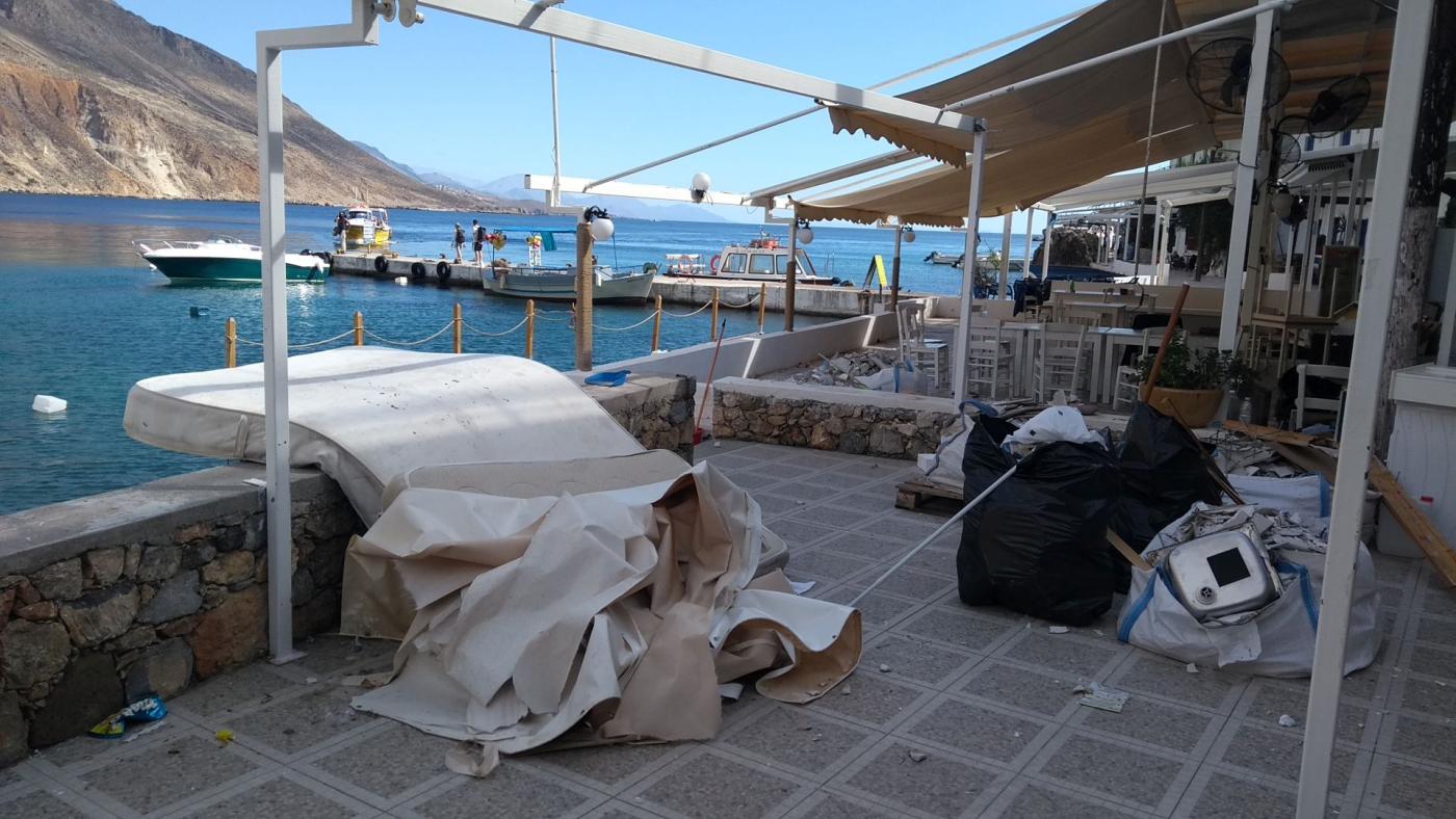 "Während die Südküste Kretas und das Hinterland der Präfektur Heraklion im Epizentrum schwerer Wetterphänomene lagen, die Siedlungen im Schlamm versanken, fegte ein mächtiger Tornado durch ein Gewächshaus in Tympaki.