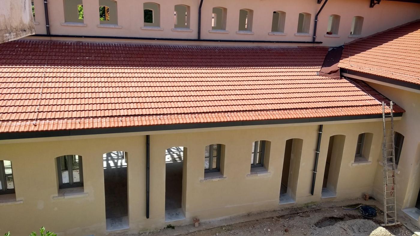 Letzten Sonnabend war das Ziegeldach verschlossen, doch das Glas auf den Oberlichtern fehlte noch.