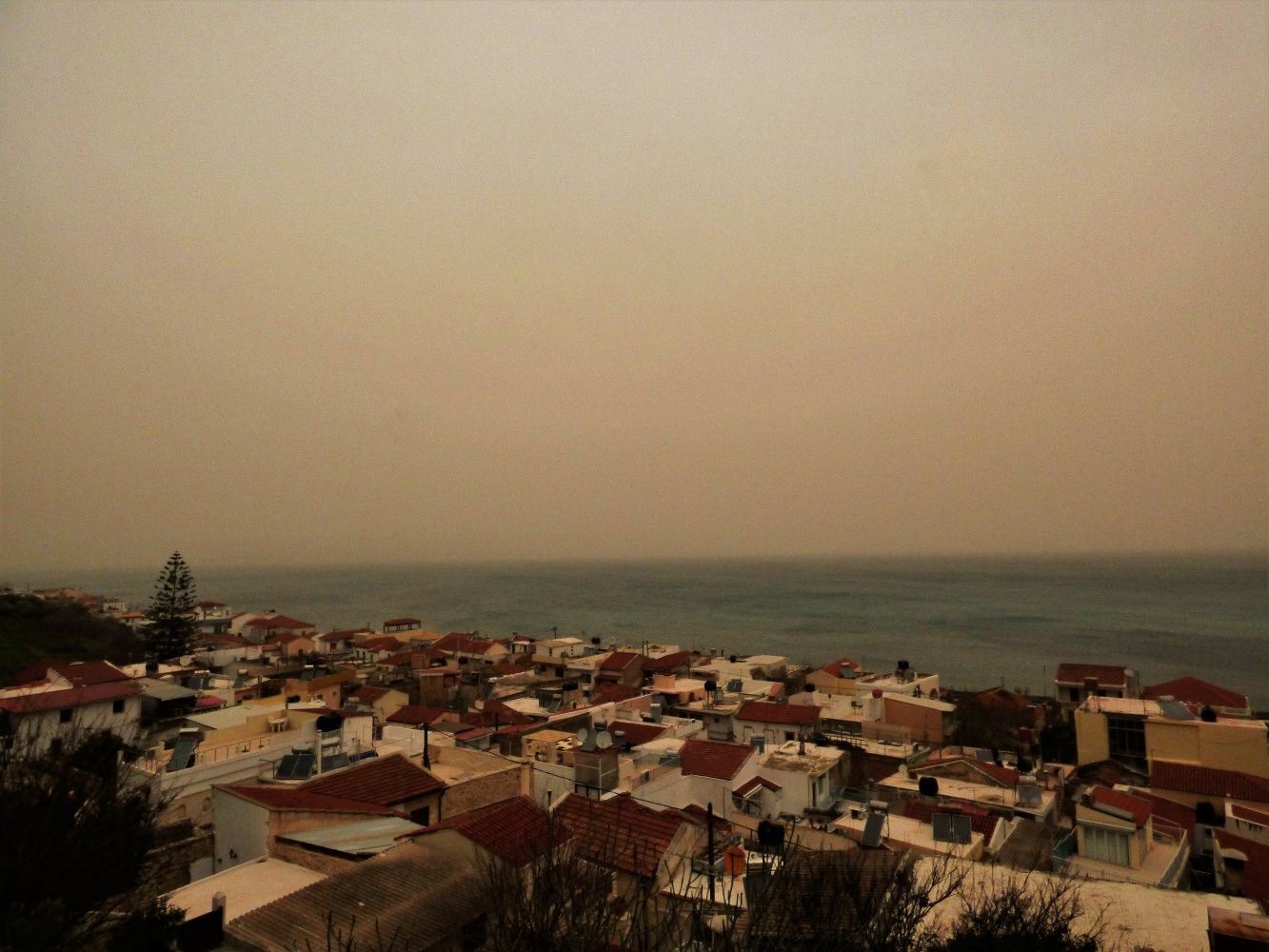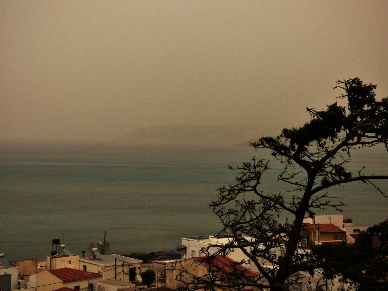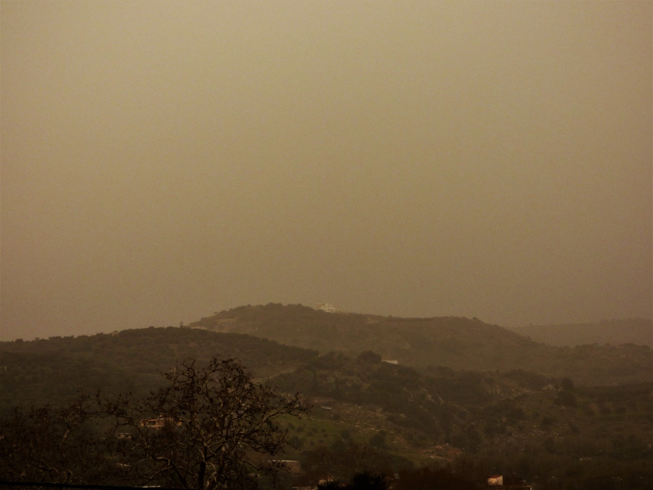 Sandsturm über Kalyves (gestern), und die Weißen Berge am Tag danach...