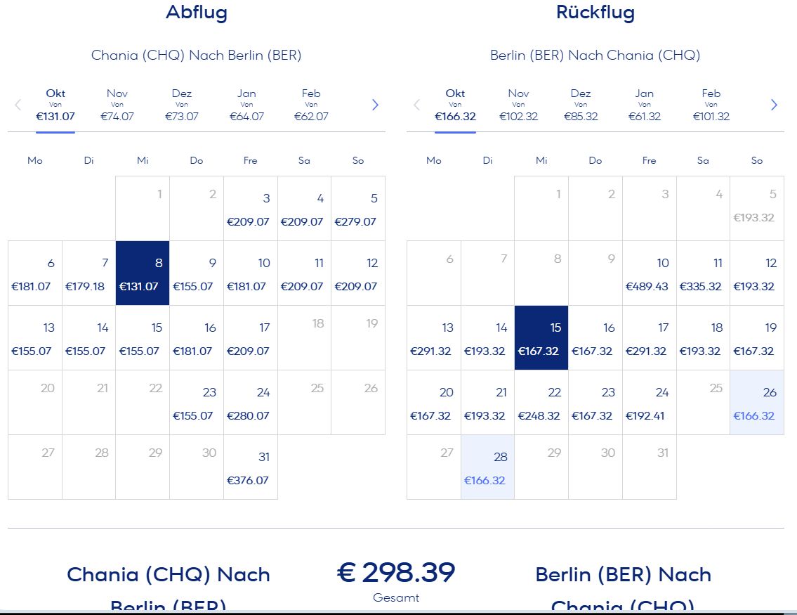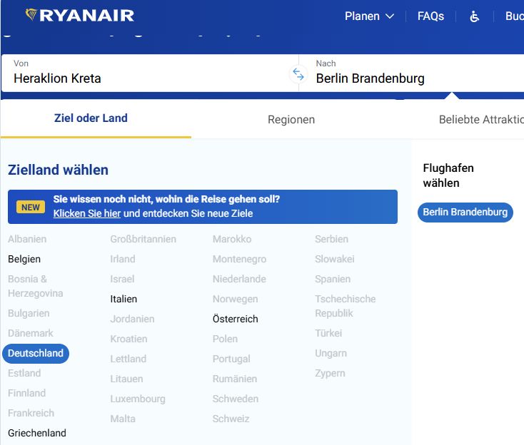 Nee, der Flughafen zählt. Der Berliner ist der schlimmste. Nur dort stoppt Rynair schon im Oktober, in Wien z. B, von wo ich auch hin und wieder nach Griechenland fliege, fliegt Rynair immer. Und es ist absolut günstig. Anfang Oktober zahlt man nur 30 und zurück auch. So ein großer Unterschied ist das!