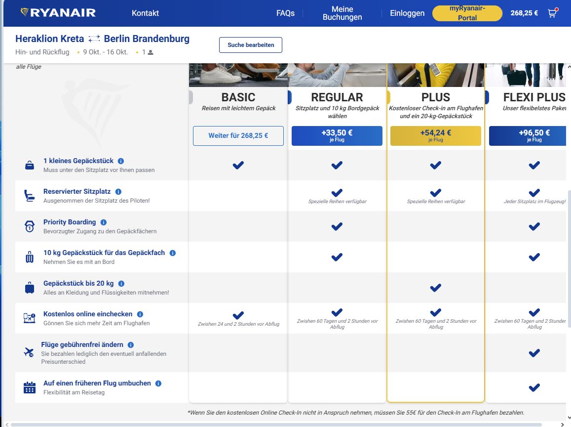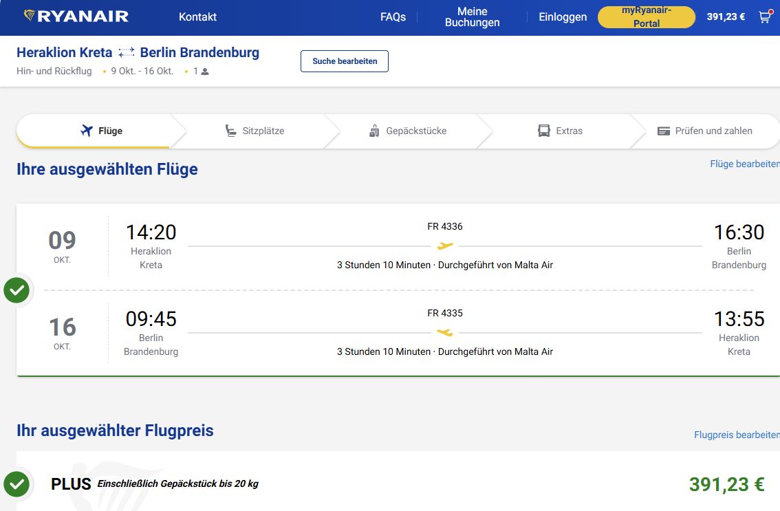 Doch ich wollte auch sehen ob im direkten Vergleich Ryanair billiger ist als Aegean.