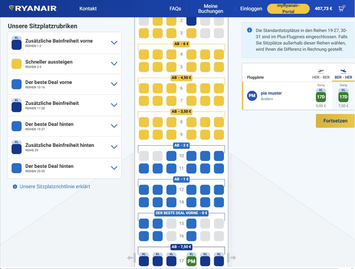 Dann ohne Gepäck, Sitzplatzwahl, WLAN...